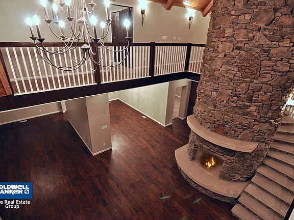 5,324 SQUARE FOOT LUXURY HOME on 4.99 ACRES ZONED AG INCLUDES POLE BARN, ANIMAL STALLS & 31' HORSE LEAN-TO! 11' overhead door 47'x14' shop area & 8' overhead door with another 47'x14' shop area, 2 other bonus areas; all with concrete floors & electric, 2 barn garages & 4 stalls complete this rural property. Spectacular 25' tall circular stone wood-burn fireplace & spindled staircase. Formal Dining & Living Room boast hardwood flooring. Premier Kitchen presents 9' island/bar, granite tops, 2 pantries, butler's station wine rack & stainless steel appliances. 1st level flex space & wrought-iron spindled staircase lead to deep concrete block basement w/ 2 fireplaces! Upper sitting area w/ breathtaking views, pendant lighting & 3rd level loft! Master Suite displays granite top, barrel ceiling & chandelier, soaker tub & walk-in shower w/ dual shower heads. Wall sconces, oiled bronze fixtures, so