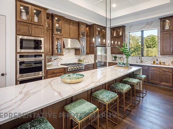 LOCATION. LOCATION. LOCATION. Exclusive FINAL 80-FT SECTION! NO REAR neighbors (with a greenbelt buffer) and NO FRONT neighbors across all homesites. Built with the QUALITY and CRAFTMANSHIP Highland Homes is known for, this home truly has it all. BUYERS CAN STILL SELECT OPTIONS, so you can personalize your dream home. No detail was overlooked. Every bedroom features its own PRIVATE full bath, plus an additional interior half bath and a dedicated pool bath off the extended outdoor living area — ready for your future outdoor oasis. The kitchen is spectacular, featuring an oversized island you have to see to believe, along with abundant cabinet and counter space — a true chef’s dream. Need space for vehicles and toys? You’ll love the rare 4-CAR GARAGE SET UP. Inside, enjoy a massive game room with a dedicated entertainment room, all on one spacious level — giving everyone room to spread out and enjoy. NO REAR EASEMENT! This is a rare opportunity. Hurry before it’s gone!