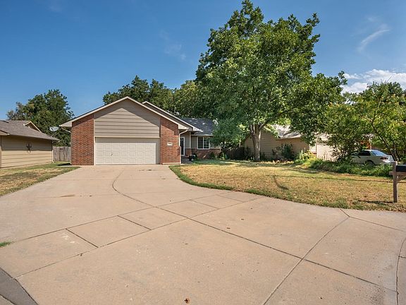 Lovely 5 bedroom, 3 bathroom home in west Wichita! Located in a quiet neighborhood near Orchard Park. The home features an open floor plan, vaulted ceilings, main floor laundry room and an oversized 2 car garage. The kitchen includes an eating bar, neutral finishes, tile flooring and stainless steel appliances. There are 3 bedrooms on the main floor including a primary suite with attached full bathroom. As you enter the basement you will notice the spacious family room with a nice wet bar. There are also two additional bedrooms with large closets, daylight windows and a full bathroom. Don't miss the storage space in the mechanical room and under the stairs. Enjoy the large covered patio in the privacy fenced yard under the shade of beautiful mature trees. Conveniently located near schools, shopping and highway access. Welcome home!