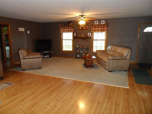 The ultimate open floor plan. Wonderful ranch with large bedrooms, first floor utility room, splendid family room with cathedral ceilings and french doors leading to the deck, patio & above ground pool. 25x25 pole building with 6x25 covered porch.