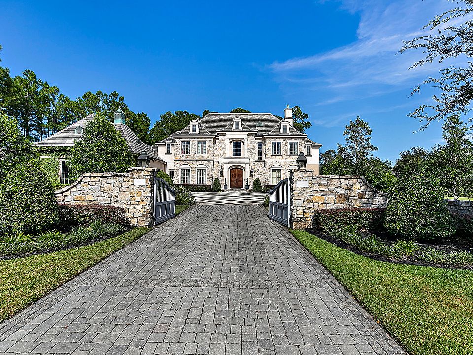 English inspired custom home built by Architectural Classics with quality construction and high end finishes throughout. Open floor plan with several flex spaces, first floor offers front gathering room, formal dining room, large great room with stone fireplace & detailed wood ceiling that opens to high end kitchen offering custom cabinetry, marble counter tops and Thermador appliances and breakfast nook overlooking the tranquil backyard, the playroom off the kitchen can serve as private TV room, gym or home office, spacious first floor owners suite is complete with luxurious bath and three custom closets and opens to lanai, you'll enjoy home movies in the private theater, the butlers pantry, walk in pantry, laundry room and powder rm