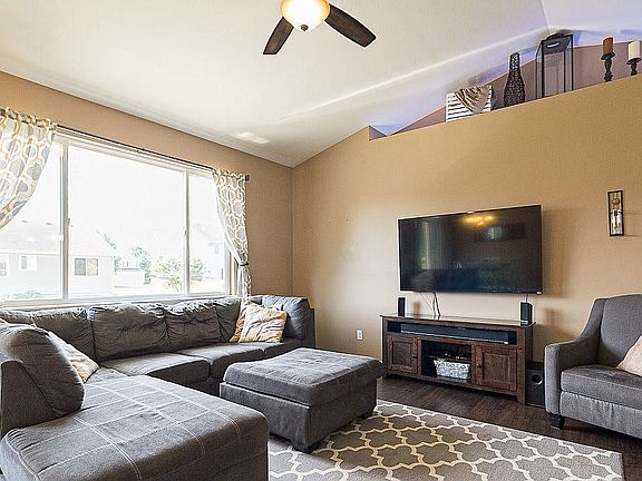 This charming ranch is located in a family-friendly neighborhood, on a quiet street. The main level has carpet, laminate and tile floors, vaulted ceiling, and features a security system. Whole home security system features 4 exterior cameras (negotiable) as well as a video doorbell. Also on the main level are 3 bedrooms, 2 full baths and laundry. The kitchen features laminate floors, quartz counters, backsplash, stainless steel appliances, under-cabinet lighting, soft-close cabinet doors and pantry. All appliances stay with the home including the washer and dryer. The master bedroom is located on the main level and features carpet floors, conventional ceiling with crown mounding and walk-in closet off the master bathroom. The attached master bath includes vinyl floors, and Tub/Shower Combo. The other main level bedrooms are both spacious and one features a walk-in closet. The finished lower level features a large living space with tiled bar area (bar not included), bedroom, full bath, workout area and storage area. Outside you'll find a patio overlooking the yard with chain link fence. Water softener and reverse osmosis system. New roof to be installed prior to closing! Feel free to call/text with any questions or to set up a showing!
