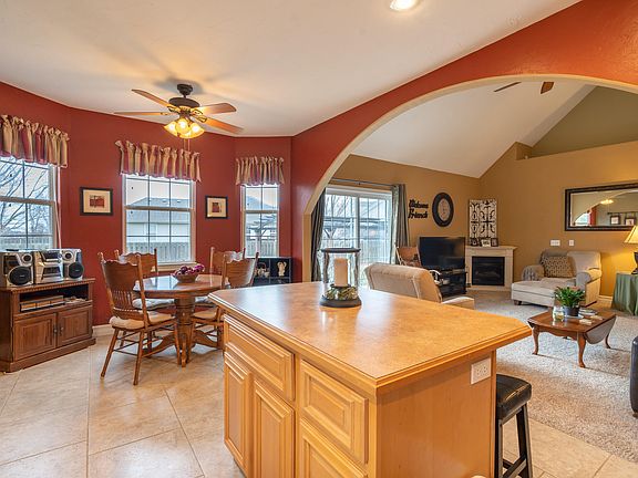 - Kitchen/Dining Combo, Island, Shade/Blinds/Shutters, Formal Dining, Drapes/Curtains-Partial