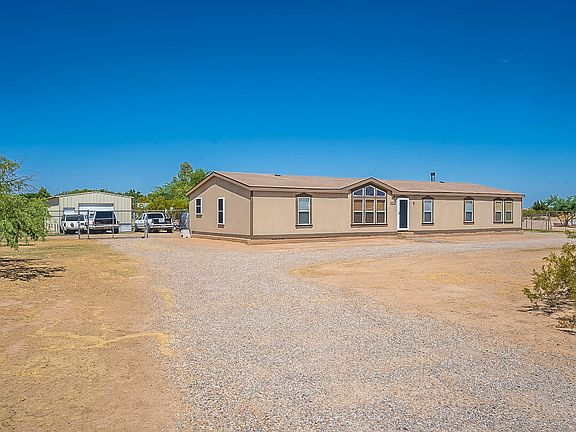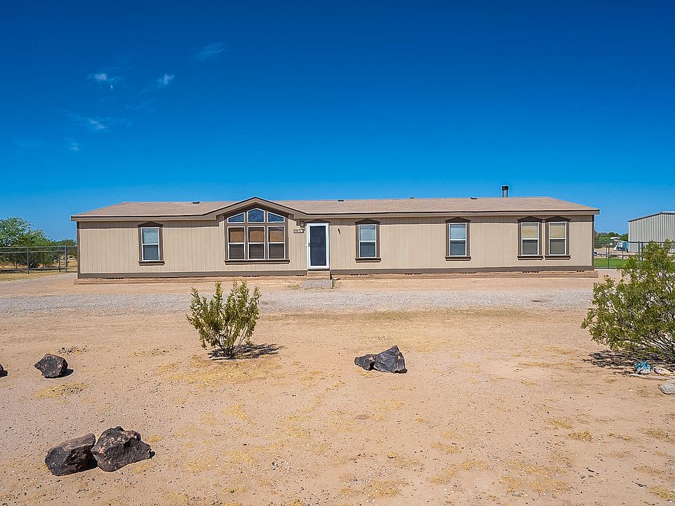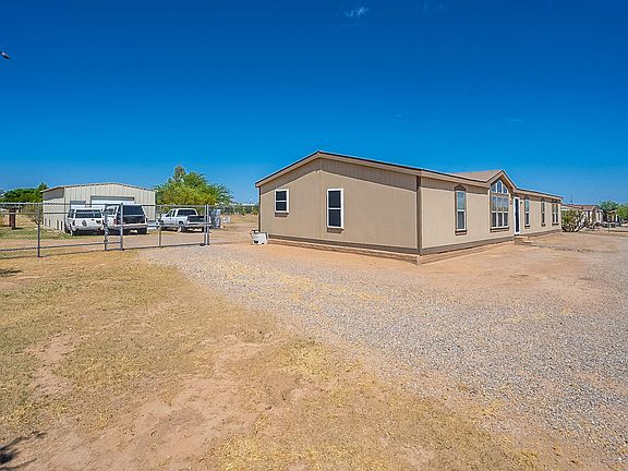 Great opportunity to own a large 4 bedroom home on over an acre. Secluded Manufactured home with a dream workshop. 20x40 Shop wired to 100AMP with a 10x20 work room inside. Permitted steel building with concrete pad. Property has 6 foot chainlink fence and gravel drive. Large home with giant great room, huge master suite, & spacious kitchen. Home is on over 1 acre with incredible desert views. Has dog kennels and awning for the property not attached but will stay.