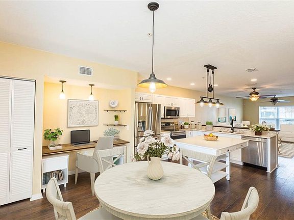 One or more photo(s) has been virtually staged. IF YOU ARE MORE COMFORTABLE DOING A VIDEO WALKTHROUGH THAN A FACE-TO-FACE SHOWING, PLEASE CALL SO THIS CAN BE ARRANGED FOR YOU. Do you like farmhouse style? If so, this renovated townhome is sure to please with its tasteful designer touches throughout. Freshly painted interior and a recently updated exterior make this a move-in ready gem. Best of all, there is no carpeting anywhere in this home! Enjoy your new laminate plank flooring without the worries of caring for carpeting. Featuring a wide-open floor plan on the main level, this beauty is an entertainer's dream. The kitchen will "wow" you with its spacious bar, center island, gleaming stainless appliances and large pantry with a unique barn door feature. Just off of the kitchen is a cool built-in office area. Perfect for working at home or as an area for homework. You will find ample storage throughout the home with an additional storage closet located on the back lanai. Upstairs there is plenty of privacy as you will find the bedrooms separated by a bonus room. The laundry room is also located upstairs so no need to lug laundry baskets up and down the stairs. The master bedroom is a dream with its en suite bath and a covered porch area directly off the master bedroom. Both upstairs baths have been updated and let me repeat, there is no carpet anywhere upstairs!! No need to worry about the AC either since it is only 2 years old. BEST OF ALL, SELLER IS WILLING TO CONTRIBUTE UP TO 2% IN CLOSING COSTS WITH ACCEPTABLE OFFER!!! This gorgeous and stylish townhome will not last long. Call for your showing today!