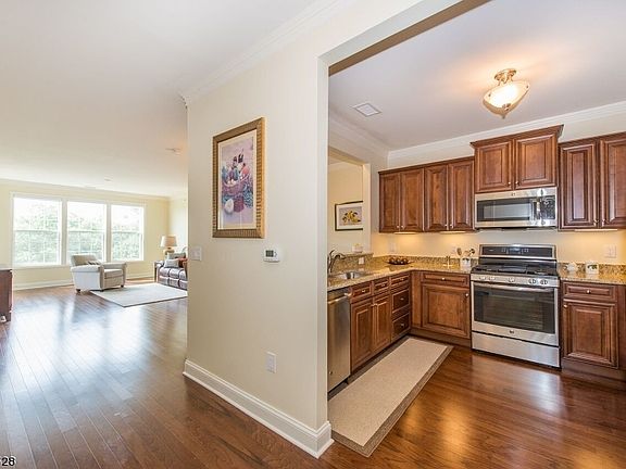 Penthouse VIEW & Lifestyle! TOP floor. Sunny & Spacious Living Rm. 2 yrs Young & rarely occupied- like Buying NEW! Between 1500 & 1600 sq ft. (Tax Record incorrect) OPEN Living Space-25 ft -HW flrs ! 19ft Master Bedrm- space for Sitting area,2 Closets, ensuite Bathrm. Kitchen has plenty of Cabinets & Counter space.2nd Parkng Spot for purchase.READY for you to just MOVE IN ! Short walk to * Upscale Clubhouse- Indoor POOL, Fitness Center, Lounge, WIFI Cafe' & MORE! * Amenities include Outdoor Pool w Patio, Picnic Pavilion,Tennis Cts.,Gardening, Clubs & Social Calendar w/Lifestyle Director.Gated Community w/ secure Garage parking located in Parklike Neighbrhd Setting. Convenience is key with nearby MALL, Rt. 80, NYC Transp,Parks Come be a part of this Newer & ACTIVE Community!