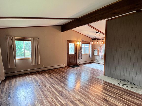 Single Party Listing-Sold before print. Experience the best of Northwoods living with this move-in-ready retreat, perfectly situated just outside of Eagle River. This welcoming two-bedroom, one-bathroom home is set on a nice, level lot with a natural tree buffer. Inside, the vaulted ceilings in the living room create an impressive, open atmosphere, perfect for relaxing after a day exploring the outdoors. Numerous recent upgrades, including a newer roof, newer windows, updated laminate flooring, and fresh paint, mean all the hard work has been done for you. New sunroom with wood paneling! The insulated and heated two-car garage provides the ideal setup for a workshop, storing your recreational gear, or staying warm on winter projects. Located near a boat launch that provides access to the Eagle River Chain.