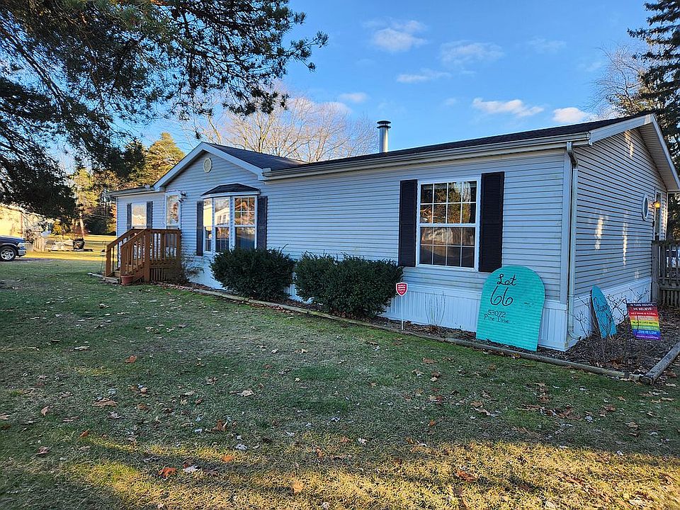 3 bedroom, 2 full bath. all appliances will be staying with the exception of the washer and dryer. fireplace is functional. carpet throughout the home. master bath has a jetted tub and stand up shower. home is located on a rented lot so buyer will have to fill out an application to rent the land. lot is a 1/2 acre and comes with a shed.