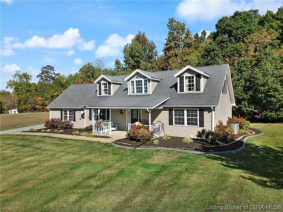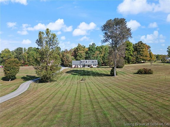 This Beautiful well maintained 4 bedroom, 3 bath home with a front porch made for " Country Sittin" on Over 6 acres and more than 2600 finished sq ft located in Georgetown IN has so much to offer. The EAT-IN kitchen boasts beautiful views of the