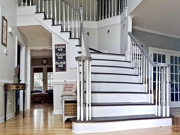 Stunning home featuring gleaming hardwoods, breathtaking 2 story foyer, formal dining & living rooms, separate family room w/ two-sided fireplace shared w/ the sitting area in the immaculately updated eat-in kitchen w/ center island & built-in desk area. Upstairs you'll find 3 spacious guest rooms & a huge master suite w/ fully updated bathroom w/ dual walk-in closets. Large deck overlooks fully fenced backyard & garden area on a cul de sac lot - all of this in awesome Harrington Grove! Welcome Home!