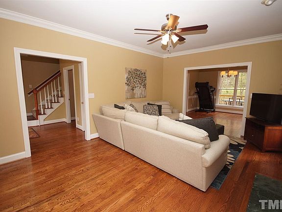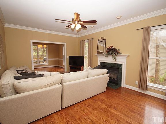 Beautifully Renovated! New Paint, Granite, Fixtures & more. Lots of Hardwoods, warm neutral paint tones, modern lighting. Sep Dining Rm w. heavy moldings. Granite Kitchen w. Stainless appl, white cabs & roomy Breakfast Nook w. view of bkyd. Living Rm w. central fp & floor-to-ceiling windows allow loads of light! Master Bath has stylish framed mirrors & painted cabs. Hardwoods in one BR & hallway. Outside, two deck areas overlook grassy fenced yard. Peaceful wooded setting. Popular n'hood w. pool & tennis.