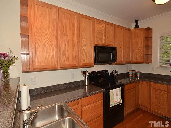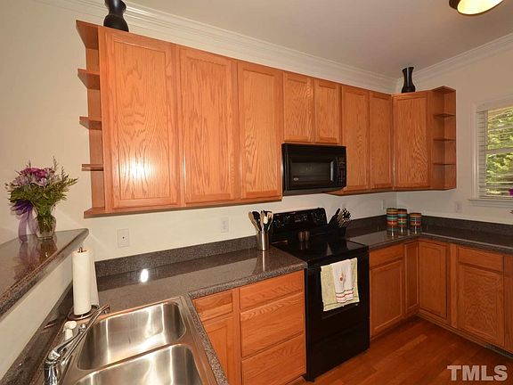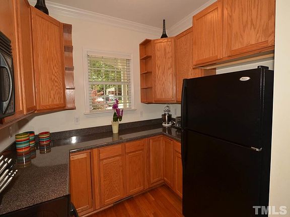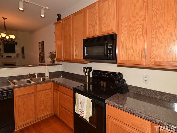 GORGEOUS END UNIT TOWNHOME WITH GARAGE. BACKS TO TREES. 3 BR's 3.5 BA's. BR'S all w/ private baths. 1st Flr BR. Lots of hardwoods on 1st. Large kit. w/ tons of storage & 2 lazy suzans. Dramatic 2-story FR w/ fireplace, lots of windows, coffered vaulted ceiling. Large Master BR w/ WIC. Master BA w/whirlpool tub/sep. shower. Deck overlooks woods. FABULOUS LOCATION! Walk to pool or Lake Johnson. Close to I-40/Downtown/RDU/RTP/NC State/shopping/restaurant. Washer/dryer/refrig. convey. Welcome Home!