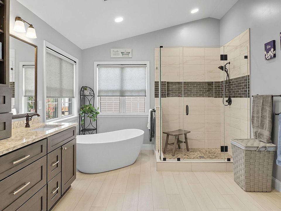 Finished lower levelRec roomHuge walk-in closetTwo-story foyerRecently updated hall bathDual sinksSeparate shower