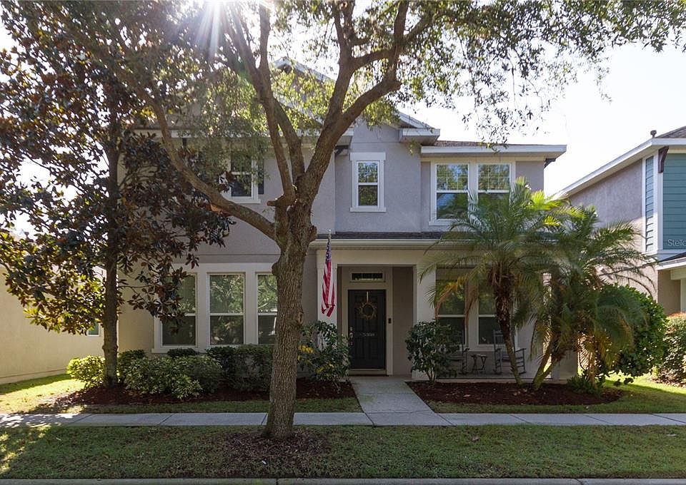 WELCOME HOME - to this quaint and spacious Florida traditional home in the coveted Starling FishHawk Ranch neighborhood. From tree lined streets, sidewalks and green space with lavish landscaping to the swimming pool, clubhouse, tennis courts, walking trails and a natural spring right next door to the Starling development with private entrance to the park - this neighborhood has it ALL. Even a communal mailbox area to gather and chat with neighbors and friends. Inside, the home is flooded with natural light from every room. As you enter there is a perfect study/office accented with french doors and the first floor is an open concept living room/dining room/kitchen/breakfast room combo with 9ft ceilings and crown molding - a gathering room perfect for family or entertaining. The kitchen is in a word- AMAZING! Granite countertops, stainless appliances including a gas stove, 42-in cabinets with crown molding, subway tile backsplash, large center island, and extensive breakfast bar seating! A bright roomy breakfast nook connects with the kitchen for your meals, with access to the fenced backyard and covered back patio! The dining room has beautiful wainscoting detail! There is a convenient half bathroom on the first floor for guests! The second level has 4 bedrooms - the primary bedroom is extremely large with a wonderful en suite bathroom with soaking tub and separate walk-in glass shower, double vanity with a separate water closet and a HUGE walk in closet for clothing and shoes. There are three other spacious bedrooms upstairs that share another full bath along with a separate laundry room upstairs. A charming front porch to sip your morning coffee, well-manicured landscaping, a rear covered porch to watch the sunrise and a rear entry 2 car garage all combine to create the ideal elevation! What’s not to love about the Starling Community at FishHawk Ranch?! Great neighbors, beautiful trails, resort-style amenities, ample parking for friends and guests, close to every retail amenity you will need and zoned for some of the highest rated schools in Hillsborough County! Luxury Vinyl Flooring - whole home (2023) House Water Filtration System (2023) Kitchen Sink & Faucet (2022) 8 New light fixtures (2022) AC (2013) Roof (2013) Gas Hot Water Heater (2013) THIS IS HOME...