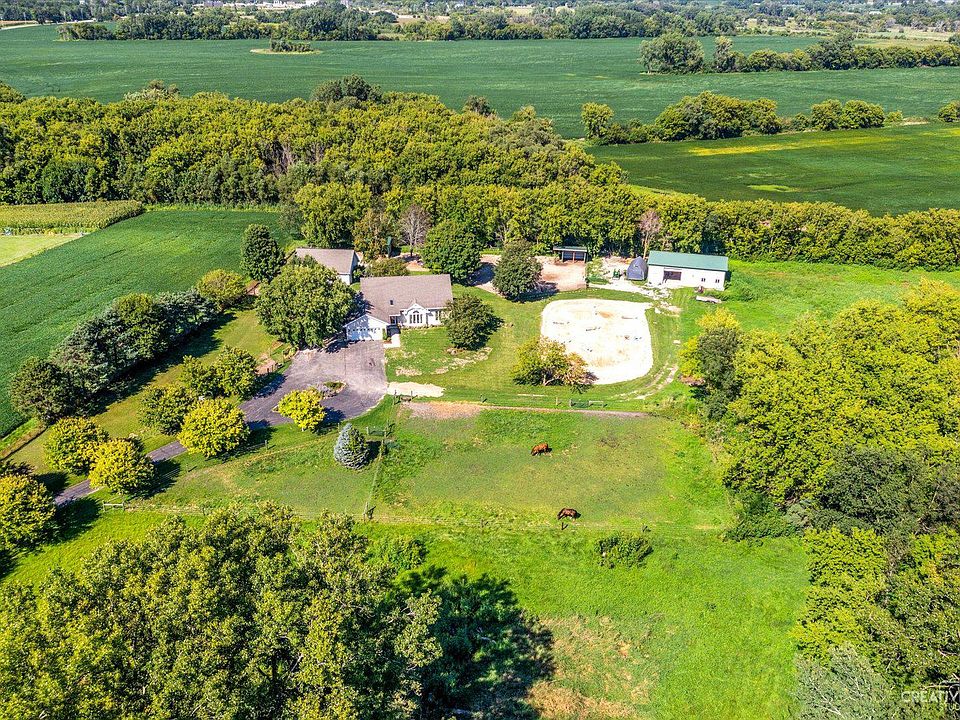 Please make sure to watch our video! You will feel the sense of home and serenity from the moment you turn in and enter the long, private, tree-lined drive. Bring your horses and animals or we can potentially include the pigs, chickens, ducks and turkey's already on the property! This majestic 7 acre working farm is perfect for the family looking for a true "out in the country" setting, while remaining just minutes from all the conveniences of town. Don't miss the groomed bridle path that takes you around the entire property and along your very own stream. You can also connect to the bike path that provides a beautiful 10-minute ride to the Rusty Nail Saloon or a 45 min trail ride to Glacial Park! The Chain of Lakes is nearby and is just a 7-minute drive/trailer ride away as well. Inside, this magnificent and recently remodeled home is light, bright, and open concept with gorgeous hardwood floors, all new trim, and fresh designer paint throughout the first floor. You will love the soaring ceilings and loads of windows that provide tons of warm natural sunlight and incredible panoramic views of the grounds. The great room is open to the dining room and the huge country kitchen, featuring a massive granite island with bar seating for 6, custom 42" shaker cabinetry, granite countertops, subway tile backsplash, a large walk-in pantry, and all new stainless appliances including an upgraded double oven/range with WiFi, a French door fridge, and a whisper quiet dishwasher! Down the hall you'll find the private 1st floor master bedroom which includes an attached en suite with a full bath and large walk-in closet! Brand new mud room with custom cabinets, built-in hall tree, stackable front load washer and dryer, and utility sink! Head upstairs to a loft space open to the first floor - perfect for an office space or potential 4th bedroom. The 2nd floor also has a full hall bath and two additional guest bedrooms, all with new carpet and loads of closet and storage space. There is even a finished attic space perfect for a hidden playroom for the little ones. There is a 2-car attached garage, 30-year roof was installed in 2011, new furnace, A/C, water softener and reverse osmosis system installed in 2017, h2o heater in 2021! Head outside and follow the brand-new paver brick walkways and patio to your own 30x50 Cleary pole barn with water, electric, and exhaust systems! It comes complete with 4 stalls with individual electric and upgraded footing. There is also a large fully insulated cedar tack room with 6 saddle racks and a heated feed room! Concrete aisle way, 3 sets of cross ties, hay loft that holds approx. 100 bales hay, new garage door opener for a 12' overhead door! All fencing was added in 2017 and is top of the line RAMM Brand electro braid horse fence with solar powered electric chargers! The 120x60 outdoor arena has brand new arena footing with 4" base of limestone screenings and 4" of sand! There are 2 additional large limestone paddocks each with a shelter! There are 1.67 acres which are cleared and ready to be fenced! There is also an additional 3 car detached, fully insulated garage with a loft able to store 650 bales of hay! One bay is enclosed, heated and leads to a separate fenced area that's set up to accommodate up to 100 chickens and other small livestock. Great location, close to beautiful Peterson Park beach, near tons of shopping, and in the Johnsburg school district! Owner said she gets quick delivery from Uber eats, door dash, shipt etc. Don't miss this rare opportunity... WELCOME HOME!