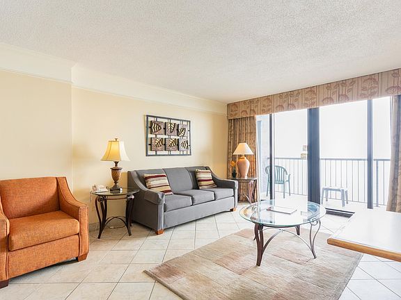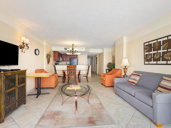 Welcome to paradise at the Beach Colony Resort! This rare 2 bed, 2 bath direct oceanfront corner unit is a gem, offering a luxurious coastal lifestyle in the heart of Myrtle Beach. With breathtaking views of the ocean from multiple angles, this condo is a haven for those seeking the ultimate beachfront experience.  As you step inside, you'll be greeted by beautiful tile flooring that seamlessly flows throughout the kitchen, bathrooms, living room, and common areas, creating an elegant and low-maintenance space. The kitchen is a chef's delight with upgraded cabinets, granite countertops, and newer black appliances, making meal preparation a pleasure. The upgraded/newer furniture adds a touch of sophistication to the living spaces, creating an inviting atmosphere for relaxation and entertainment. The living area has beautiful crown molding. The Washer & Dryer have been upgraded recently.  The master bedroom is a true retreat, situated in a direct oceanfront corner, allowing for added natural light and panoramic views of the coastline. A large owner’s closet allows for storing personal belongings when you are away. The ensuite master bath is a spa-like oasis, featuring double sinks and a tub shower for a touch of luxury and convenience.  Beyond the allure of the condo itself, Beach Colony Resort is renowned for its impressive array of amenities. Indulge in multiple heated pools, sip refreshing drinks at the pool bar, meander along the lazy river, or unwind in the inviting hot tubs. Fitness enthusiasts will appreciate the full gym, while the resort offers racquetball, a game room, and complimentary Wi-Fi for all your entertainment needs.  Strategically located in the heart of Myrtle Beach, Beach Colony Resort puts you just minutes away from the best shopping, dining, entertainment, and attractions that the Grand Strand has to offer. Whether you're seeking a short-term rental investment, a second home, or a primary residence, this property is a MUST SEE!  Don't miss the opportunity to experience the epitome of beachfront living. Schedule your private viewing today and make this rare corner unit at Beach Colony Resort your own piece of coastal paradise!