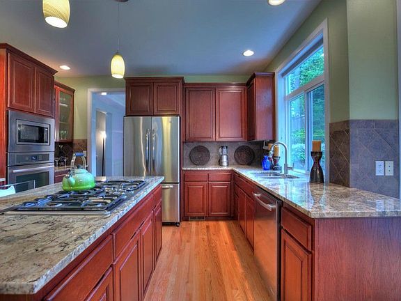 Immaculately maintained, stylish 4 bedroom in sought after Stonegate community. Perched on shy 1/2 acre, overlooking Cougar Mountain, life doesn't get any better! Amazing NEW kitchen w/luscious granite, Jennair SS appliances, rich cabinetry & newly refinished hardwood flooring. Elaborate molding details, Master w/5 piece bath, 2 fireplaces, custom lighting, & more. One of a kind backyard & play area plus fenced, RV parking. Issaquah SD/Newcastle Elem. Close to I90/I405 & Sea Tac.