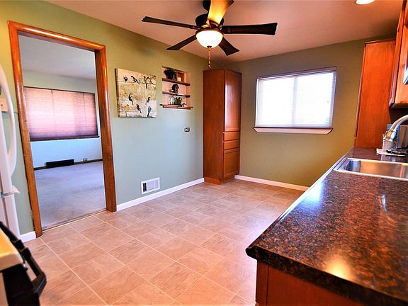 Wow! Check the view from your front porch. The large corner lot has lovely views of neighboring Cornerstone Park and the Front Range above it. The nicely manicured yard has a fresh white vinyl fence and a sprinkler system. The home also has a large 2 car garage installed with 220V power. Come inside to find a cozy living room, 3 beds, 2 baths and an updated kitchen with elbow room. Out the back door is a private yard with a covered patio. This home comes with all the appliances, original hardwoods under the carpet, and a one-of-a-kind bonus room in the basement - Complete with a bar. The home is being sold through an estate. The seller will not do repairs. Sold As Is. Buyer to verify square foot.