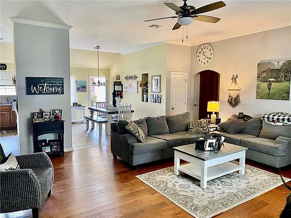 Come and see this beautiful 3 bedroom, 2 bathroom home in Oklahoma City! As soon as you walk through the door, you will fall in love with this home. The living/dining flow and high ceilings makes this home feel open and spacious. The dining room also connects to the kitchen which has stainless steel appliances. Primary bedroom and bathroom has a lot of space with a nice walk-in closet. Cozy up next to the gas fireplace in the living room during those cool winter days, or enjoy the view of the water and water fountain behind the home from the comfort of your covered patio during those nice spring/summer days. Home also comes with a 6 camera security system, as well as a leased security system. Property has a storm cellar in the floor of the garage as well.