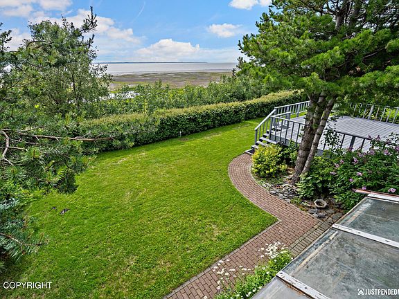 150 feet of unobstructed views of Cook Inlet shoreline. No looking over rooftops for your ocean view - it's in your backyard! This 30,000 sq. ft. private lot is tucked away in the trees with a park-like setting & lush landscape, yet centrally located in South Anchorage off Dimond Blvd. Conveniently close to shopping, restaurants & theaters. The owner's suit, private from the main living area,offers sweeping inlet views, expansive walk-in closet, spacious bath with cedar sauna, cozy gas fireplace, and access to a private deck with southern exposure. The remodeled kitchen includes Viking appliances and granite countertops. Whether you need in-law space, office room, or a guest suite, the lower level provides a separate living area with kitchenette, bedroom & full bath. Definitely B & B potential here! A sunroom offers panoramic bluff views, and attached greenhouse allows you to bring the outdoors... indoors. Create the space you want with this large, private, bluff view home, located close to everything!