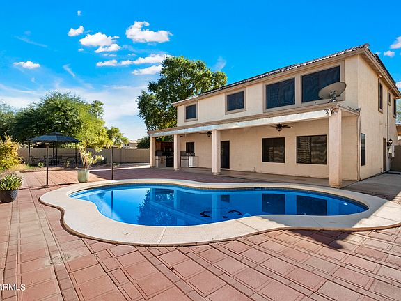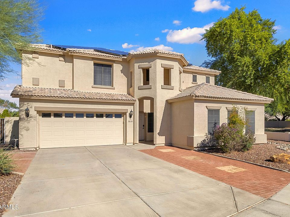 RESORT STYLE LIVING IN THE DESIRABLE COMMUNITY OF MANISTEE RANCH! This gorgeous home is located next to the large green belt and play area that traverses through the community. Large array of OWNED SOLAR PANELS COME FREE with this home! This popular & spacious floor plan includes a large bedroom & full bath downstairs. Main bedroom and 3 additional bedrooms & 2 full baths upstairs. Separate formal dining/living room. Large, covered patio with built-in outdoor kitchen for entertaining family & friends. Large backyard with pool, pavers, landscaping, and side area w/RV gate for additional storage/work shed, RV/Boat, or play uses. Beautiful views of the neighboring greenbelt w/walking/bike paths lined w/mature trees. Seller is moving out of state & has priced this home for a quick sale!! The seller is moving out of state and has priced this home for a quick sale!