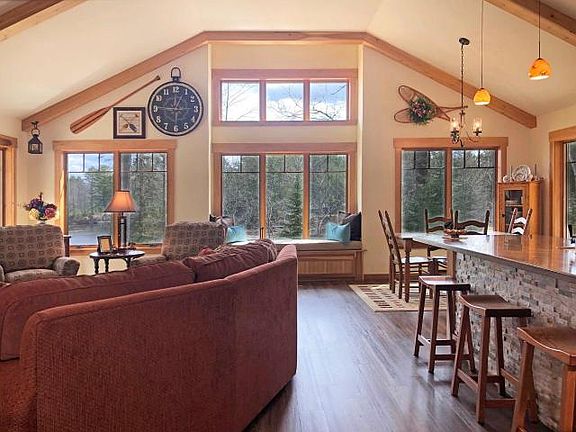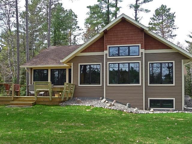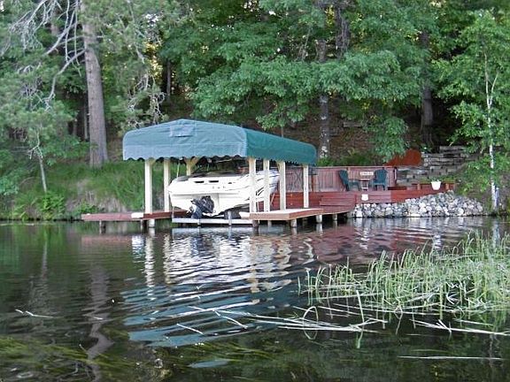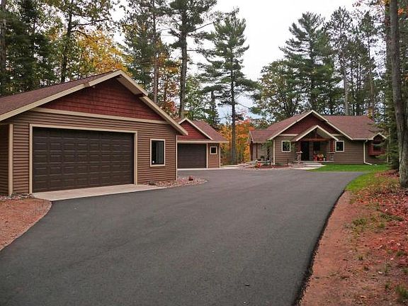 This beautiful newer home is nestled on a 1.62 acre lot and 200' of south facing frontage offering privacy & spectacular river views with full access to the Eagle River Chain of 28 Lakes from this quiet and peaceful location. This well built & well designed home offers a fantastic floor plan featuring a lovely great rm with vaulted ceiling, a wall of windows and a cozy gas stove . The kitchen features a walk-in pantry & lg island with solid surface counter top. The mn lvl mstr en suite will seal the deal! A spacious bedrm with vaulted ceiling, patio doors lead out to the sunrm & on to a deck. Plus lg walk-in closet with custom shelving, & the bathrm has a double sink vanity & lg walk-in shower with corian surround. Also on the main level is a guest bedrm with built-in desk & WIC, a guest bathrm, laundry rm & mud rm area that leads out to the garage. The lwr lvl has a finished guest bedrm. Plus 2 spotless detached garages and a fantastic pier and covered boat lift. AWESOME!