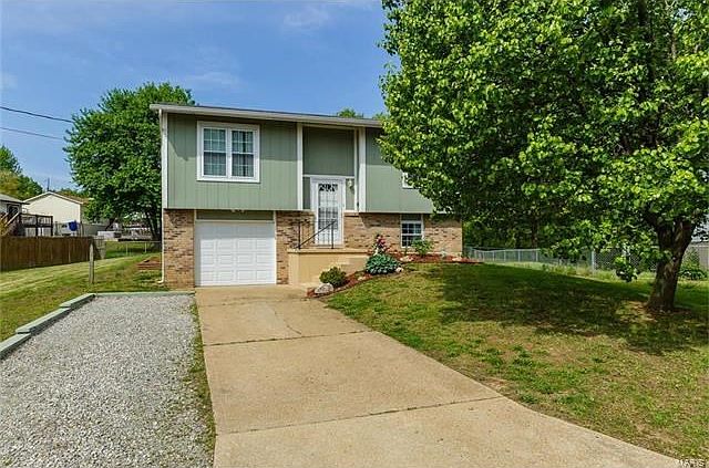 Adorable home with large, level, fenced yard and deck located in Imperial Missouri on a cul-de-sac just minutes from Highway 55. Updated kitchen with black and stainless appliances. Granite counter tops. Custom maple cabinets and breakfast bar. Nice sized pantry and laminate wood flooring. Large master (18 x 11) on finished lower level adjacent to half bath. Nice sized great room with carpeting and two additional bedrooms on main level. One car garage with double driveway for extra parking. Lot of amenities for the price.