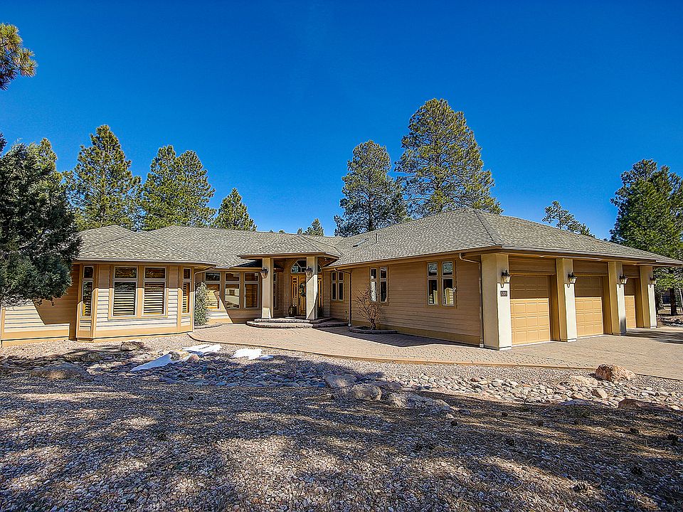 This single level home in Lakeside Acres is, in a word, perfect. With 3100 sf, 3 large bedrooms and a separate office on 1.39, treed and private acres, it is the essence of luxury Flagstaff living. Enjoy a spacious open kitchen, dining area and greatroom filled with natural light from a wall of windows that look into the forest. If you love to cook, entertain or both, the kitchen is a dream: endless counters, serving space, a professional six burner range and two ovens. When you walk through each room you feel the exceptional construction quality in every detail - beautiful high ceilings, custom cabinets, wood-framed windows, sky lights, solid wood doors, and so many more touches that create a special home. Do you need space for crafts or projects? There is an extra space off of the laundry room for that. Enjoy privacy, quiet, and the beauty of the pines from your back deck year round. With an oversized three car garage and central air there is truly no other home just like this in Flagstaff. Call Eileen (928) 607-9610
