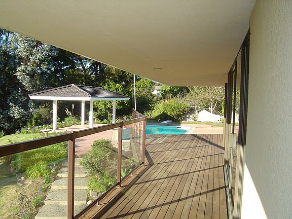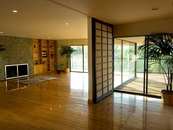 Wow, what an architectural treasure. This Covenant Contemporary jewel was built in 1963 and definitely has the lines of a Frank Lloyd Wright masterpiece. The owners have further enhanced this home with a total renovation with new kitchen, new family room, all new bathrooms, and all new flooring. Three bedrooms, including the Master, are on the main level and two secondary bedrooms that are huge are found at a lower level. Great long horizontal architectural lines of glass reminiscent of Frank Lloyd Wright make this a light and bright home where all bedrooms and entertaining rooms experience outside views of nature. Gleaming brand new bamboo wood floors are found in the living room along with the massive stone wall. All materials are natural and this is some of the appeal this property offers. A beautiful glass viewing balcony extends the entire back of the house to the kitchen. Views of the golf course are now hidden by mature shrubbery but could easily be reclaimed with trimming – we’ll let you decide. Ideally located, within walking distance to the Village, and great I-5 access. The horse trails around this property walks residents back to the Village, School, and shops. The owners recently installed the cabana to allow for full viewing of the pool. Homes like this are rare to find and even more so in the RSF Covenant. Come and take a look and feel the peace generated by being one with nature.