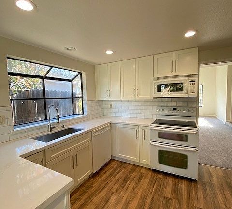 Remodeled Pine Hollow Home For Lease - water, garbage and gardener included! This 3 bedroom, 2 bath home has been updated and is ready to move right in! This single story home boasts and open floor plan, vaulted ceilings, and updated, modern fixtures. The kitchen shares a view to the lovely outdoor backyard and patio area. The bathrooms are newly remodeled, newer flooring and carpet throughout, freshly painted interior, and new HVAC. This is a home that you certainly do not want to miss out on! 12 month lease Water, Garbage and Gardener paid for by landlord
