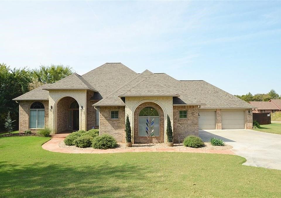 Just Beautiful ! Carl Albert Jr. and Sr. High school - Custom built home on 2.31 acres MOL - Custom wrought iron entry door-2"X6" outer walls-full home security system with cameras-stained concrete floors-formal dining or could be formal living-study has builtin cabinetry-open plan with breakfast bar - gorgeous kitchen cabinets with huge island-granite countertops-pantry-master bedroom has rope lighting with Pullman ceiling-master bath has heated flooring & his and her sinks with jetted tub-walkin shower and walkin closet-guest bedrooms have Jack & Jill bathroom-large sunroom which could also be a gameroom-large storm shelter in garage floored area-gated entry to workshop which has a concrete slab, insulated, electric and insulated overhead door-also RV storage with lighting and 50 amp electrical plus a carport and fenced separate backyard area - this one has it all - don't miss out - won't last long....