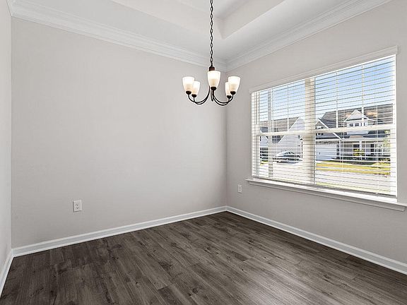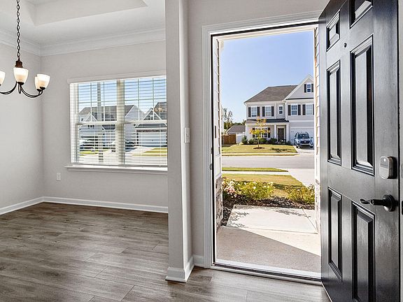 Immaculate 2022-Built Home in Raleigh with Upgrades Galore! All the perks of new construction with NO WAIT! Beautiful LVP flooring and crown molding throughout the main living areas. The kitchen is a dream with granite countertops, sleek gray cabinets, subway tile backsplash, and stainless appliances - including the fridge! You'll love the open floor plan that flows from the kitchen's eat-in bar top to the spacious living room, perfect for your nights in. Plus, entertain in style in the formal dining room featuring a tray ceiling. The 1st Floor Primary is a true retreat, offering two closets and a luxurious ensuite bathroom with dual vanities, tons of cabinet space, and a zero-entry tiled shower with glass door. Large laundry room on the 1st level next to the primary; washer and dryer included! Upstairs, you'll find two additional bedrooms both with walk-in closets! Versatile BONUS ROOM—ideal for a media room (Cat 6 installed!), home gym, playroom, or easily convert it into a 4th bedroom. The upstairs bathroom offers dual vanities and a bathtub/shower combo. Out back, relax year-round in the perfect NC weather on your screened-in porch with a ceiling fan. The HUGE, PRIVATE, & already FULLY FENCED BACKYARD is ideal for gardening, entertaining, or running free! Also included is a CPI Security System with a grandfathered rate and a transferable termite bond providing extra peace of mind. Located near the newly opened I-540 ramp, you'll have quick access to everything the Triangle has to offer! Just 20 minutes to DT Raleigh, 30 minutes to RDU Airport, and only 4 minutes to restaurants, Costco, and other shopping! Don't miss out on this incredible deal! HOA dues go down to $175/qtr starting Jan 2025.