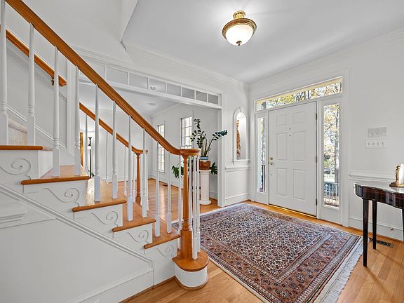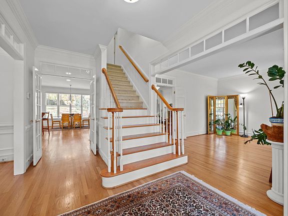 Experience Timeless Elegance in Desirable Olde Creedmoor Soak in the rich colors of autumn as you arrive at this meticulously maintained, custom-built home nestled on a serene .93-acre wooded lot. A long, private driveway leads you to this three-sided brick beauty, perfectly situated on a quiet street that embodies peace and privacy. Step inside and immediately notice the superior craftsmanship throughout — from gleaming hardwood floors and detailed moldings to custom built-ins and elegant trim work. The formal dining room impresses with a built-in china cabinet, ideal for entertaining. The formal living room (or office) offers versatility and flows seamlessly into the inviting family room, where a masonry fireplace with gas logs and custom built-ins create a warm, comfortable atmosphere. The gourmet kitchen combines functionality and style, featuring a thoughtful layout and a wall of windows in the breakfast area that fills the space with natural light and beautiful views of the surrounding landscape. A main-level guest bedroom provides convenience and privacy for visitors. Upstairs, retreat to the expansive primary suite, complete with a tray ceiling, private sitting room, and a luxurious spa-inspired bathroom featuring a vaulted ceiling, large walk-in shower, whirlpool tub, dual vanities, water closet, and spacious walk-in closet. Two additional bedrooms, a generous bonus room, and a laundry room with sink complete the upper level, easily accessible by two staircases. Storage is abundant with numerous closets and an unfinished walk-up attic offering endless possibilities. Outdoor living is equally impressive — relax on the huge screened porch with vaulted ceiling or entertain on the Brazilian IPE wood deck with a retractable awning, where you can enjoy sunshine or shade while taking in the peaceful, natural surroundings. The side-load two-car garage features a pristine epoxy-coated floor for a polished finish. This exceptional home combines classic elegance, modern comfort, and impeccable attention to detail — truly a rare find in one of the area's most sought-after neighborhoods.