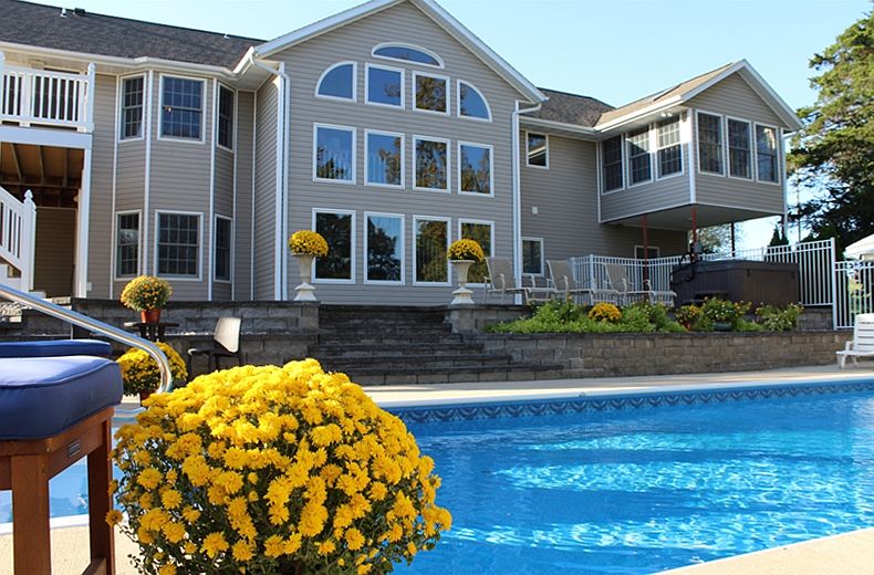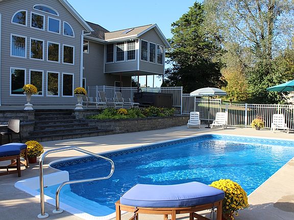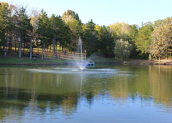 Peaceful views of rolling hills are the landscape of this beautiful ranch sitting on 5+ acres. Just far enough out of town to spread out with all the amenities you are seeking in outstanding neighborhood. Cozy front porch greets you as you enter the home with gleaming hardwoods and vaulted ceilings. Be in awe with the tremendous view of the private wooded acreage through the wall of windows perfectly showcasing the beautifully landscaped in-ground pool, wooded lot with gazebo and private (stocked) lake w/fountain and private dock nested in the back of home. This 5 bedroom, 3 bath home includes 3 car garage up, 2 car garage down with newly constructed safe room with reload area ($20K), main level laundry,