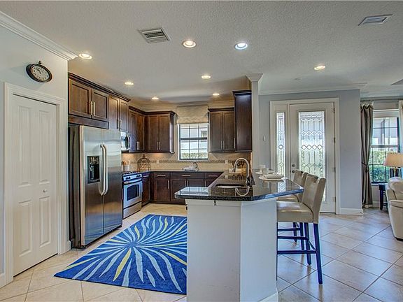 Make your way down the paved pathway to the decorative full light front door which welcomes you into this gorgeous pool home with 3 bed/2 bath plus den. Enjoy the morning sunrise over the lake from your screened in lanai with outdoor kitchen while overlooking your pool and spa. Entertain your friends and family in the spacious gourmet-style kitchen with breakfast bar, granite counters, stainless steel appliances, and gas stove which opens to the living room and flows easily into the separate formal dining room. Escape to the master retreat with beautiful views of the pool and enjoy the en-suite bathroom with his & her sinks and walk-in closet. Down the private hallway, you will find the den, laundry room, two guest bedrooms and the second bath. This Arezzo model was built as a model home and it shows. Magnificent tray ceilings accented with crown molding adorn the Master Suite, Den/Office, Dining Room and Great Room. Start enjoying resort-style living in the maintenance free Esplanade Golf & Country Club community. Esplanade's luxurious Amenity Center, with its full time activity director, includes a state of the art fitness center, billiards and events rooms plus an amazing pool, hot tub and resistance pool, nearby grills, kayak/canoe launch, bocce ball & pickle ball courts, tot lot, bark park, and championship golf club available with tennis courts. This home is located in the "non-golf" section, which means lower HOA and CDD fees, but full use of all clubhouses and other amenities in Esplanade.