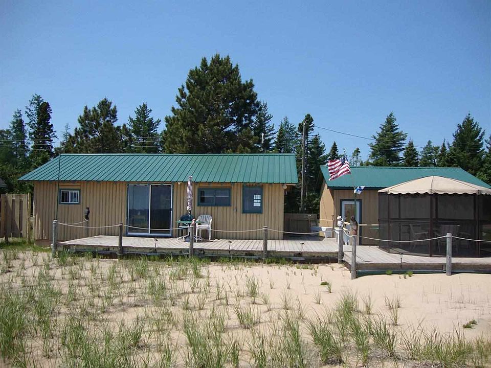 By-The-Sea, By-The-Breeze of the beautiful white sandy beach of Lake Superior. Fantastic sunrises and dancing waters in the moonlight. Close to boat ramp and river. Well built home with metal roof. Big deck to Gazebo- very cheerful. Even a fishing shed with sink to clean all the fish you catch. The lot is big; if you want to build a larger home. There is plenty of parking and there is 47 additional deepth of sandy Beach. See Assoc Docs. Must see to appreciate.