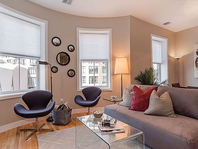 Sunny 2 bedroom home in the heart of the South End features lovely bow front living room, contemporary kitchen with plenty of cabinet and counter space. Two bedrooms with ample closet space, hardwood floors throughout and deck rights.