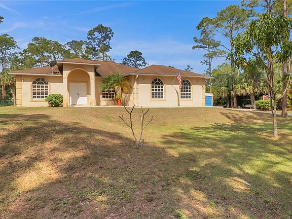 Welcome to this amazing 3-bedroom, 3-bathroom home with a dedicated office that can easily be converted into a 4th bedroom. Nestled on a private 2.5-acre fenced lot with a park-like drive-up appeal, this nearly 2,100sf home offers both comfort and functionality. The home features high ceilings throughout, creating a spacious and inviting atmosphere. The master suite is a true retreat, boasting two separate walk-in closets, dual vanity sinks, a walk-in shower, and an oversized soaking tub—perfect for unwinding after a long day. Two guest bedrooms are on the opposite side of the home with a shared bathroom and the third full bathroom is off the living room with an exterior door leading the lanai (and your future pool!!) For those who need extra workspace or storage, the property includes a 2018-built 960sf insulated steel metal frame workshop—fully permitted with electric—ideal for hobbies, storage, or a home business. Conveniently located on 5th St SW, one of the few streets along the boulevard with a traffic light, ensuring easier access and smoother traffic flow.