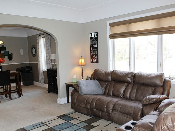 Charming character home featuring 2 bedrooms & 1 bathroom situated on a large corner lot. Walking into the home, you will pass through the enclosed porch and enter into the bright and spacious living room (original hardwood under carpet!). The living room is open to the large formal dining room with arched walkways & an antique lighting fixture. The kitchen features updated cabinetry, tile flooring and a breakfast bar. Off the kitchen is the full bathroom with a walk through to the master bedroom. The master boasts a walk-in closet and a private vanity/sink for added convenience. Bedroom 2 is roomy with carpet. The basement is unfinished but is already framed for potentially 2 non-egress bedrooms/family room and a bathroom. Laundry is also on this level (Washer & Dryer stay!). Heading outside you will find your backyard oasis with a beautiful stamped concrete patio, wood privacy fence, storage shed, and ENORMOUS 3-stall detached garage (Total of 1,008 sq. ft!) added in 2009 with vinyl siding & alley access. Don't miss your chance to own this one of a kind home!