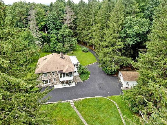 Just 90 miles from NYC! Tucked handsomely behind spruce & hemlock trees, you'll find this solidly built, substantial Stone home surrounded by 25 lush acres. This storybook retreat offers much for those seeking self-sufficient living. There are wooded areas & open pastures ripe for organic farming, hunting, riding horses, or driving ATV's. Set up as a 2 family, it's perfect for inlaws. Upstairs is an eat-in kitchen w/ breakfast porch, Large living room w/stone fireplace & built-in cabinetry, 2 spacious, sunny bedrooms, a 3 season screen & glass-enlosed porch, full bath, oak floors under carpets, and beautiful wood doors & trim moldings. The full unfinished attic would make a wonderful artists loft. On the ground level is a living rm/dining rm, eat in kitchen, bathroom, and ensuite bedroom. Out back is a 2 car garage and a storage shed. Lovely grounds, complete with a babbling brook & all the privacy one could want! Mohonk and Minnewaska State park are just 20 minutes away! Come see