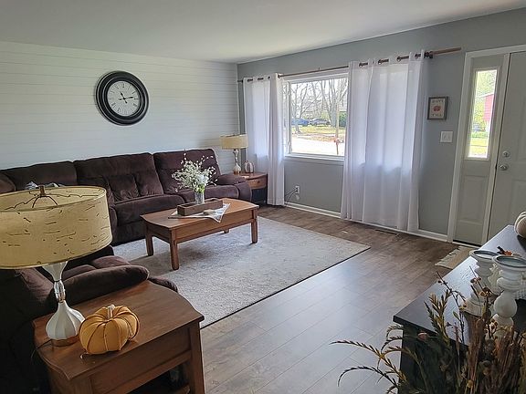 Buyer's financing just fell through, their loss is your gain to buy this beautiful cozy ranch with established trees, a large fenced-in backyard to host your next summer BBQ, and a front picture window to view the beautiful flower beds. It's been well loved and maintained with tons of new features including new windows & roof in 2016, water heater in 2018, new flooring and baseboards throughout (2022), fresh paint, new light fixtures, and more! Not to mention a full basement with a roughed in bathroom & an extra deep garage for storage. Situated within 2 miles of the historic square, enjoy delicious restaurants, lively nightlife, and unique shops right down the road. This property is immaculate, well-cared for, and move-in ready for new owners. This home really has it all. Quick closing is possible.
