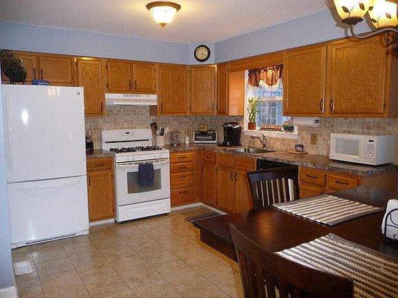 Modern 3BR, 1.5BA Townhouse in excellent condition! LR w/Pergo floor; large, modern eat-in KIT w/new counters & back splash; all appliances, washer, dryer, sliders to deck; 1st floor laundry & 1/2BA, 2nd floor BA remodeled in 2013; cedar closet; LL ready to finish. Gas heat & A/C. Parking. Convenient location
