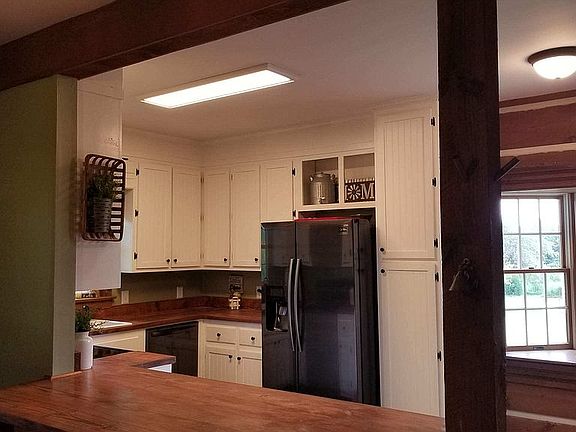 This cape-cod-style home is nestled on 3 beautiful acres of picturesque countryside surrounded by timberland and fields. This home boasts an open floor plan on the main living area, an eat-in kitchen with all new appliances, 4 bedrooms and 3.5 bathrooms. The main level includes a master bedroom with two private bathrooms, second bedroom/office and another half bath. The main level also has 9ft ceilings, pine floors, and the exterior walls are log planks which create a warm and inviting atmosphere. The beautiful brick fireplace contains a wood-burning insert that provides heat to the entire house even on the coldest winter nights and custom built-in cabinet and shelves. The upstairs features two bedrooms and a third full bathroom. A spacious deck on the back of the home overlooks the peaceful countryside and provides a perfect view of the many gorgeous sunsets. On the front of the home is an open front porch that creates a great environment for further enjoyment of the tranquility the property provides. There are two large barns which are perfect for projects, additional storage, and a workshop. If you enjoy quiet country living this is the home for you!