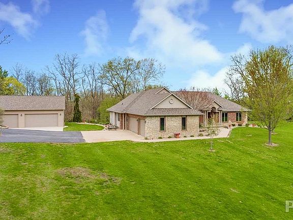 Recreation, nature, wildlife, privacy, serenity - this 2935 sq ft ranch with 3 car attached garage has it all! Situated on 4.470 acres with mature timber, a pond, and beautiful river valley view, this quality built open floor plan ranch has a living room with fireplace and vaulted ceilings, gourmet kitchen with Viking double oven, granite countertops, hardwood and ceramic floors, 4 seasons sunroom, and spacious deck overlooking woods. The full finished walkout basement has a family room with woodburning fireplace, full bath, bedroom or office and lots of storage. Amenities include: geothermal, radiant floor heating, security system, gutter guards and extra insulation. A NEW 30x40 fully insulated shop, 3 car garage was built in 2015. 13 mo. Home Warranty. Don't miss this beautiful Plum Creek Builders ranch, 5 minutes from the Illinois River for recreation, 20 minutes to CAT/Mossville, 30 minutes to Peoria. House roof, new 2016.