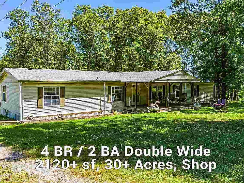 OZARKS COUNTRY LIVING AT IT'S BEST! Plenty of room in this 4 bedroom, 2 bath home, and plenty of room on the 30 acre (m/l) partially wooded, fenced lot. This 1999 double-wide has 2128 sf of living area with large living room and family room. Space for family, friends, guests. The oversized eat-in kitchen has island PLUS ample cabinets and counter space. The oversize master suite has sitting room, walk-in closet, and private bath with separate tub and shower. With 3 additional bedrooms, there is space for a den, office, or craft room. Large laundry/utility room with tankless hot water heater. Covered front porch looks out over shaded yard and pasture. Large covered rear deck is perfect for grilling and outdoor enjoyment. 20x30 shop with electric. Roof replaced 2016, AC replaced 2019. Near White River access. Ample parking. No restrictions. Farm animals, Horses, OK. Close to restaurants, shopping, businesses, medical.