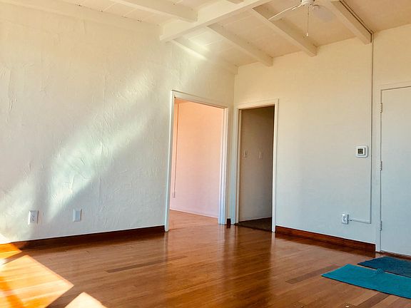 This spacious second floor apartment is flooded with light and sparkles with new paint throughout. It features 2 bath rooms and 2 bedrooms and an office; the office has been used as a third bedroom for a roommate situation. Wood floors, high ceilings and a marble living room fireplace add to the charm. Vintage tile counters in the kitchen complement the new refrigerator/freezer, gas stove/oven, disposal, dishwasher and oodles of cupboard space. The spacious dining room can be used as a family room as well. The sun deck is for your use only. Your garage space has room for a car plus some storage. Coin laundry on site is shared with 4 other apartments. The apartment is 2 blocks from the beach, and within walking distance of grocery store, shops and galleries. Sorry, no pets. Lease this and move in now; to schedule a tour, call Carmen