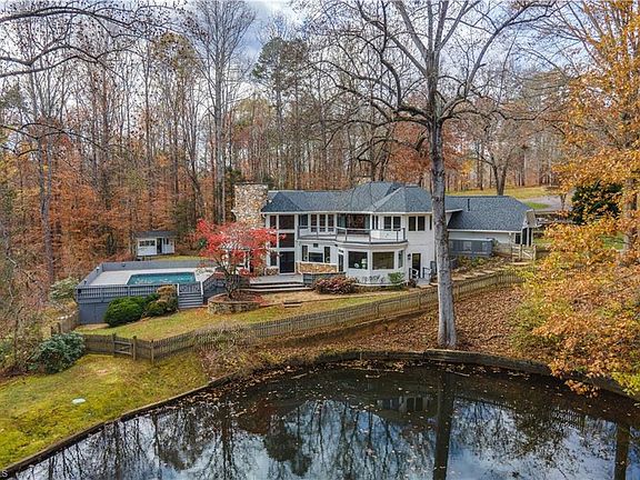 Enjoy your own peaceful, private estate with pristine landscaping. This unique property sits on approximately 9.9 (+/-) acres in the Marrin Community of Lewisville, North Carolina, only 10 minutes from Winston Salem. Your gated tree line drive welcomes you to your tranquil home retreat. Resort amenities included are your own salt water pool, fishing pond, 3 run dog kennel, firewood storage building and outdoor playhouse/ workshop. This custom built, multi-level home has breathtaking views. The three bedrooms offer ensuite baths. The updates to this estate are endless. The library room off the pool is a flex space for a 4th bedroom, office, game room or workout. This stunning property is a rare gem.