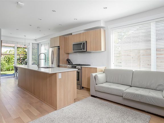 In the heart of Mount Pleasant a stunning 3-bed, 2-bath open-concept luxury corner townhome w/private garden. Close to restaurants, shopping, cafes, schools & parks, 10-minute commute from Downtown. Inside, the bright and spacious open-concept main floor includes a custom chef kitchen featuring S/S Bosch appliances, including a gas stove, custom soft-close cabinets & quartz countertops.The dining room has patio access to a spacious fenced backyard, perfect for summer BBQs.Upstairs, the huge master suite includes a large ensuite w/double vanity & glass shower.The cozy balcony off the master suite is great for morning coffee. Other upgrades include smart home features like Mysa Smart thermostats, nest smoke detec, August locks & a rentable EV 240V charger in the parkade.Book your showing now
