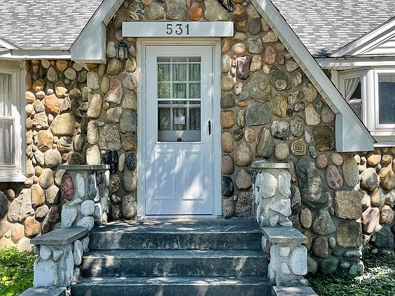Take a step back in time when homes were built with stone and pride of craftmanship. This charming home is estimated to be built in 1945 with 2 bedrooms and 1 full bath on main floor. The open kitchen and dining room features a built in buffet, hutch, pantry closets and bay window. The spacious living room also has a large bay window. Plenty of hallway storage with built ins. The finished lower level features a recreation room, workshop,1/2 bath, laundry, room, sewing room, & office. The back yard is fenced in with a covered deck, storage shed, and mature trees. Plenty of room in the 2 car garage. Best feature - no city taxes but does have city water, sewer, and natural gas. Ideal commute location to Petoskey, Boyne, & Traverse City. Walk to downtown Gaylord.