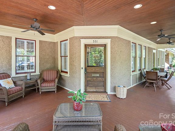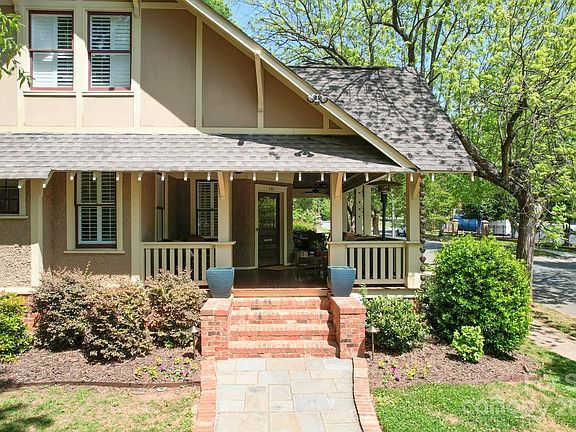 A true southern bungalow updated and expanded for modern living with multiple room configurations and entertaining options, all while retaining its historical character. A chef's kitchen like no other with Thermador appliances, Sub-Zero refrigerator, custom cabinets, farmhouse sink and breakfast bar. Living room is full of natural light and includes a casual dining area with built-in cabinets. Entertaining room features an original brick fireplace that is a work of art! French doors lead to current office. Master bedroom suite with WIC and refreshing bath including Jacuzzi tub. Two additional upper bedrooms with jack-n-jill bathroom. Its very rare to have a garage in this neighborhood let alone an attached one - private and secure. Drop area off garage with rear stairs to fifth bedroom, full bath and bonus room. Unwind from the world on the large front porch with al fresco dining area. Walking distance to Latta Park, several schools, East Blvd, SouthEnd and a quick drive to Uptown CLT.